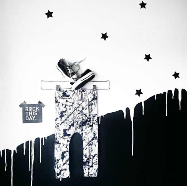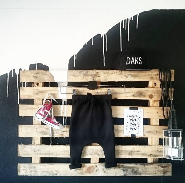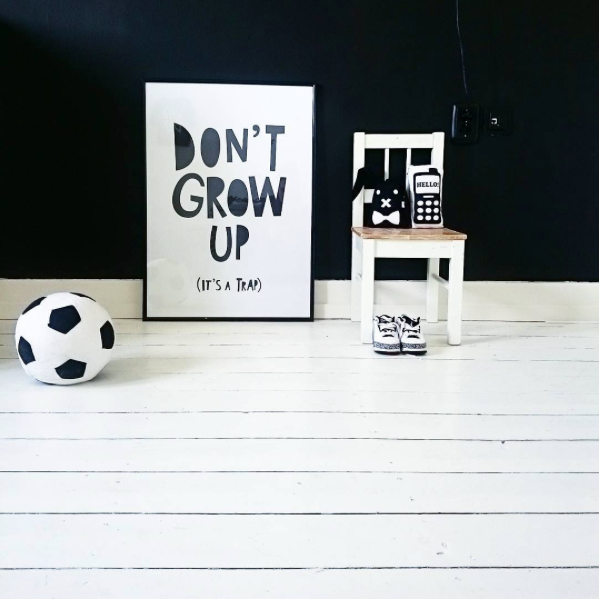 Zo werd ik de afgelopen tijd via Instagram verliefd op de foto’s van de kamer van Daks, de zoon van @__amvds__; een stoere monochrome kamer met een supercool geverfde wand en een pallet aan de muur voor steeds wisselende moodboards van accessoires en prints!