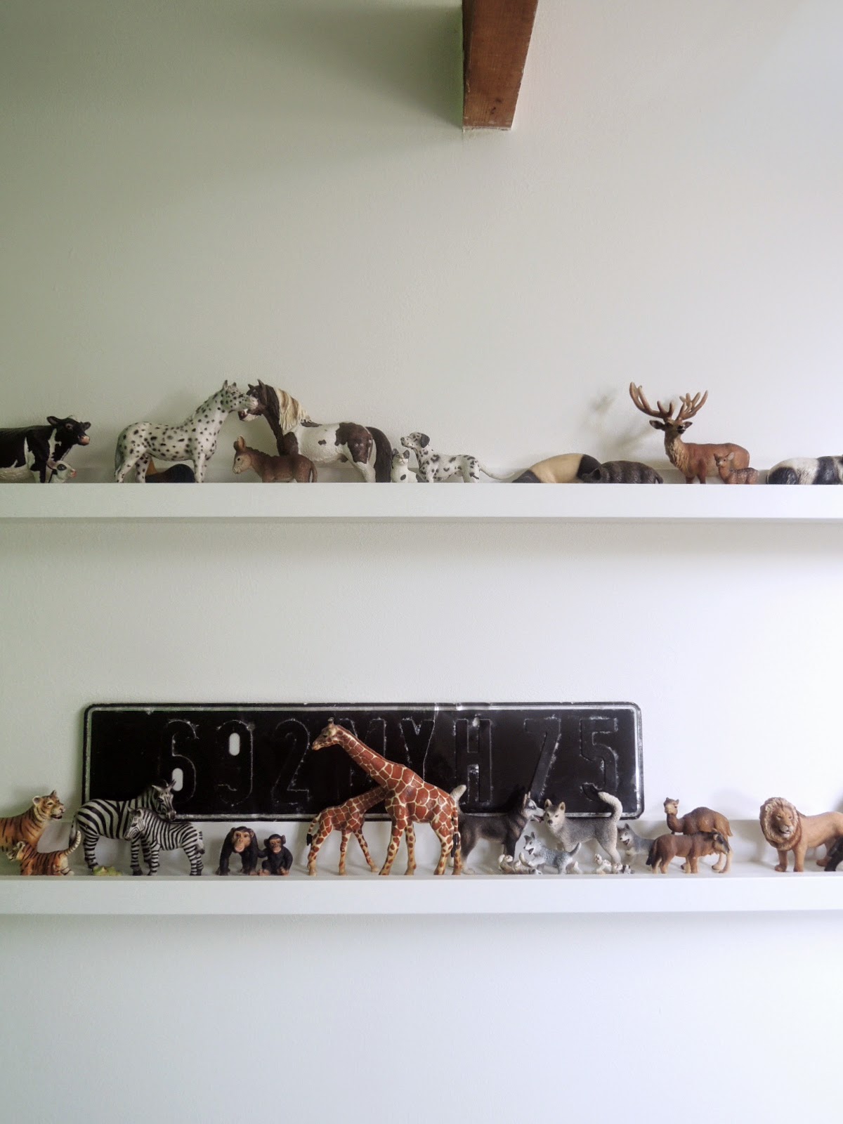Afgelopen februari verhuisden we naar ons nieuwe thuis en kreeg Floor voor het eerst echt zijn eigen kamer. Naast het meeverhuizen van enkele favorieten, zoals zijn Schleich-dieren, Wolf-dekbedhoes van H&M, pluche tijgerhoofd van de vrijmarkt in Amsterdam en zijn leger- en lego opbergkisten, kreeg hij ook een voetbalveld-wand en het Franse nummerbord van zijn grote broer Sam op zijn kamer.