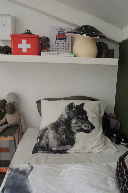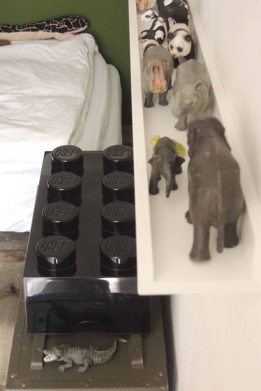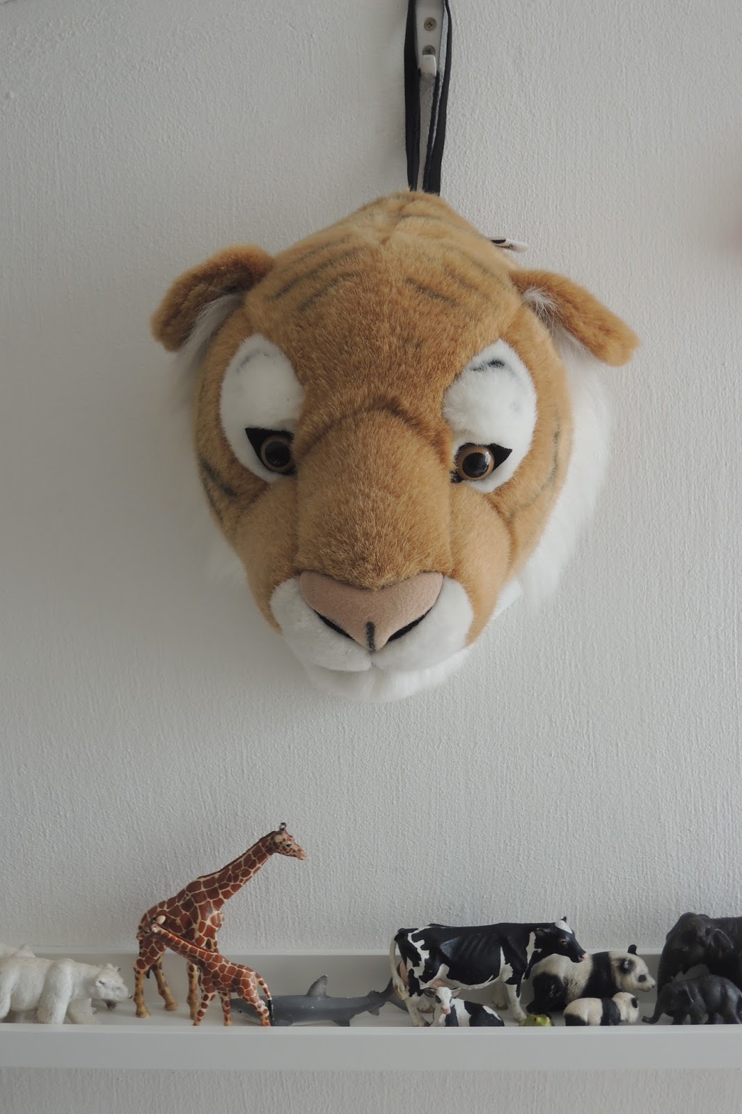 I also decided to store Floor’s Schleich animals in a creative way, inspired by a picture on Pinterest. We bought shelves at IKEA and I even managed to hang them myself.